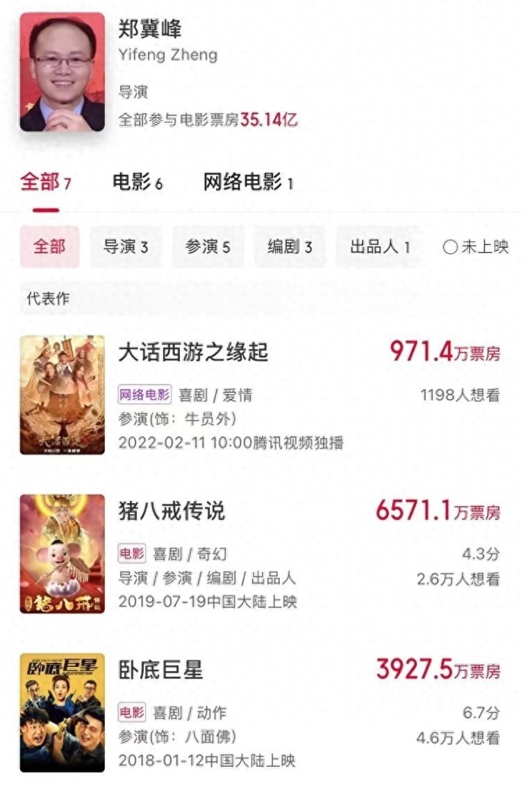 猫眼专业版显示,江西籍导演、商人郑某峰曾在在周星驰电影《美人鱼》中扮演“郑总”一角,现任香港HFIO资本管理公司董事长、金像影业董事长。
